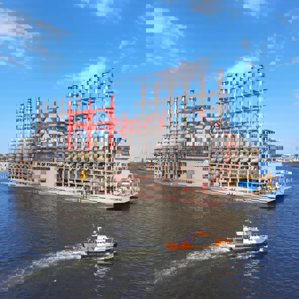 Shark Class Powerships deliver power capacities of 110 to 240 MW, offering flexibility for various energy needs. At up to 240 meters long and 45 meters tall, these self-propelled ships feature a draft of 5 to 6 meters, ensuring easy integration into a wide range of ports. With on-board accommodations for 50 people and fuel storage capacity of up to 5,500 MT, Shark Class Powerships provide sustainable and efficient power generation.